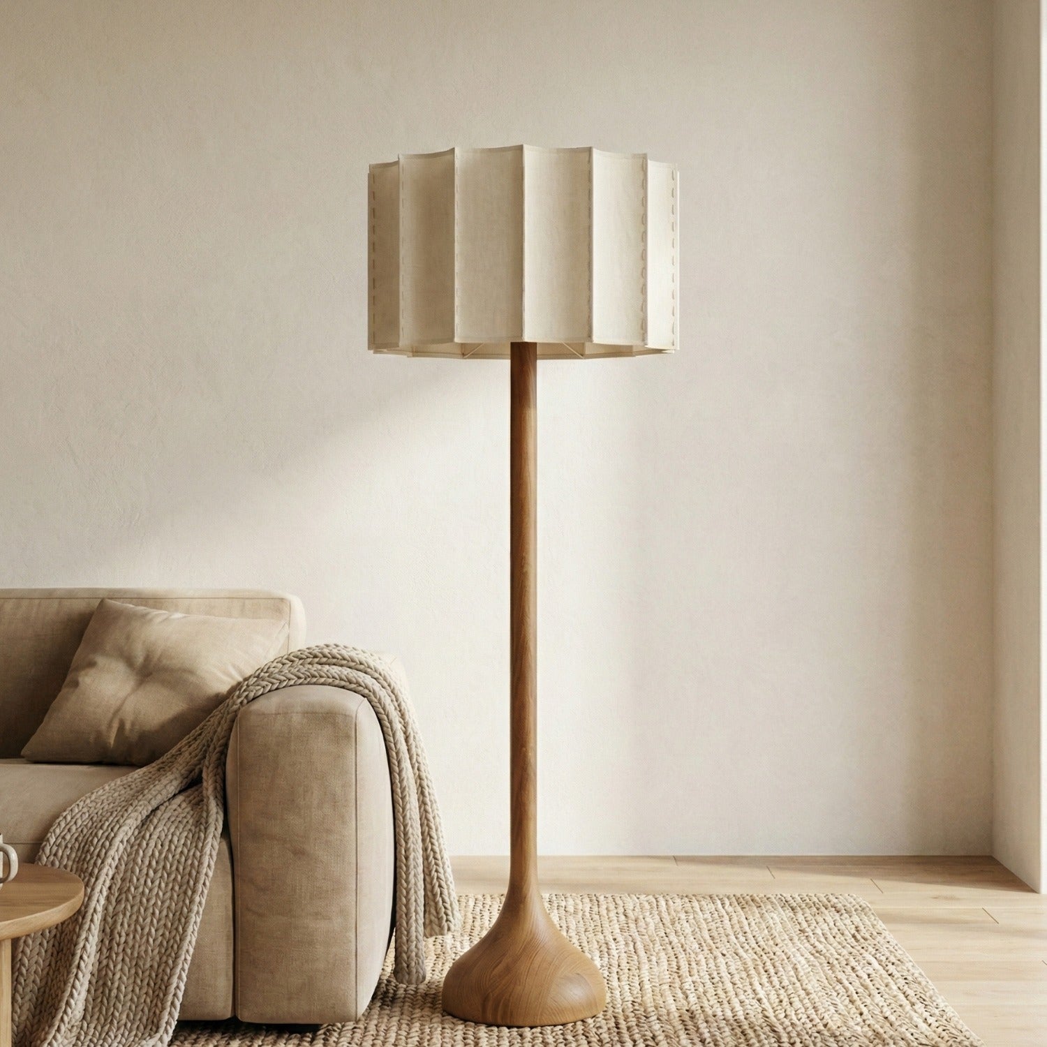 Bring warmth and tranquility into your space with this Sora floor lamp, designed for modern and minimalist interiors. Crafted from solid wood with a soft fabric shade, it emits a gentle, inviting glow perfect for bedrooms, living rooms, or reading nooks. The sleek yet artistic design complements any contemporary decor, creating a peaceful ambiance.