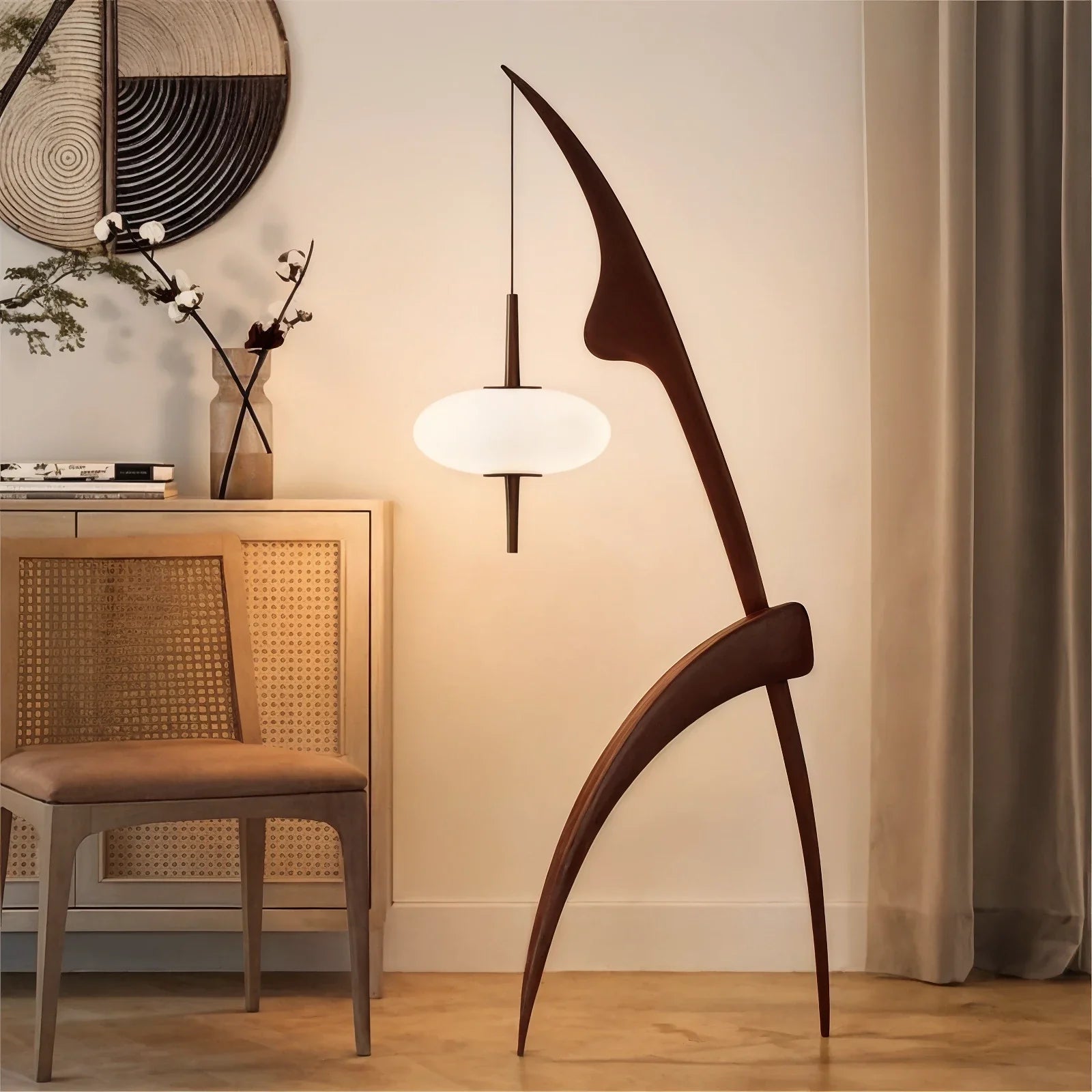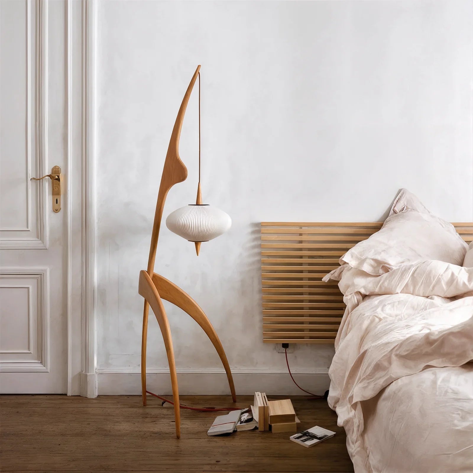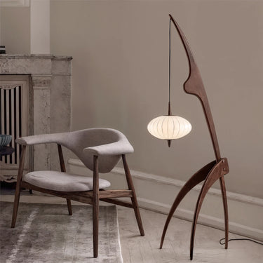 The Maravilla Floor Lamp combines sculptural design with natural elegance. Handcrafted from solid walnut wood, it features an asymmetrical tripod base and a suspended fabric lampshade that diffuses warm, ambient light. This piece adds both function and artistic flair to any space, making it ideal for living rooms, lounges, or creative studios. With its clean lines and organic tones, the Maravilla Lamp enhances modern, rustic, and Mediterranean-inspired interiors alike.