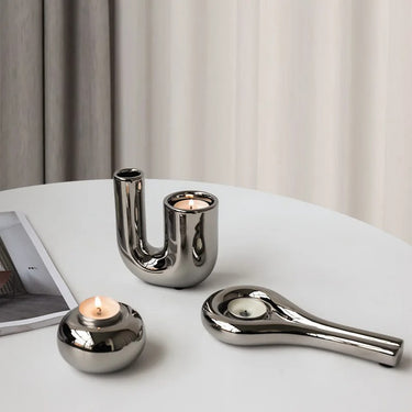 Add a refined, artistic touch to your interior with this Shelvy Ceramic Candle Holder. Its sleek, electroplated finish and minimalist cylindrical shape make it an eye-catching accent for living rooms, offices, or shelves.