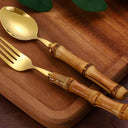 Each piece is carefully made, with unique variations in the bamboo handles, adding a personal touch. The eco-friendly bamboo complements the durable, corrosion-resistant stainless steel. Available in silver, gold, and brown finishes, this set blends luxury with practicality.