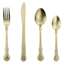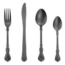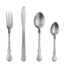- 4-piece set: teaspoon, dessert spoon, fork, and dinner knife