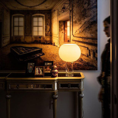 This vintage glass Oceane Table Lamp brings Italian-inspired elegance to your home with its frosted glass shade and polished chrome finish. Compact yet stylish, it provides warm ambient lighting, perfect for bedrooms, living rooms, or study areas.