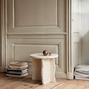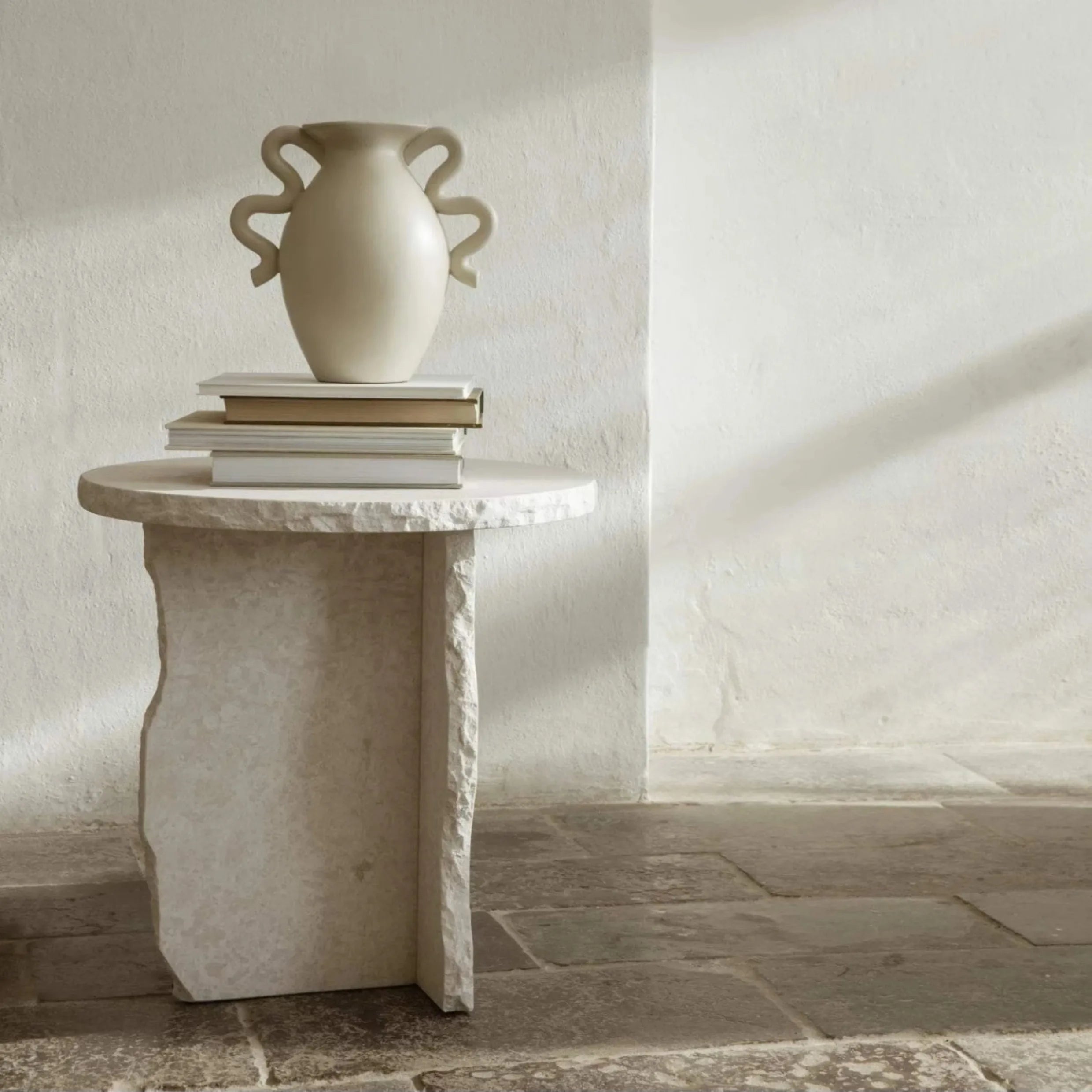 Influenced by contemporary sculpture, the Calloy Table showcases bold geometric simplicity. The luxurious white rose marble enhances the table’s sculptural form, highlighting its natural strength and versatility across different environments.