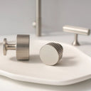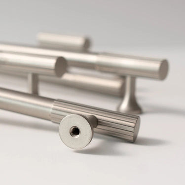 Enhance your kitchen cabinets and drawers with Reya Knobs, featuring a striking Art Deco-inspired linear design.