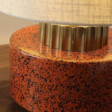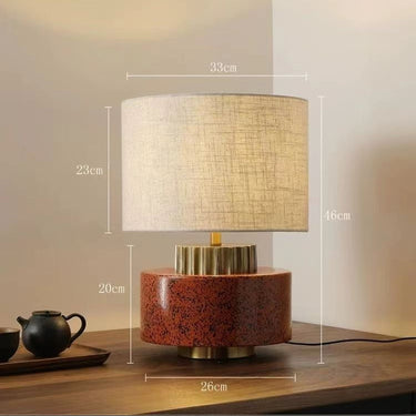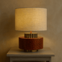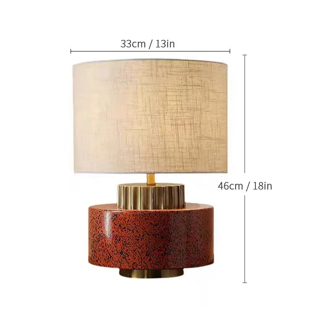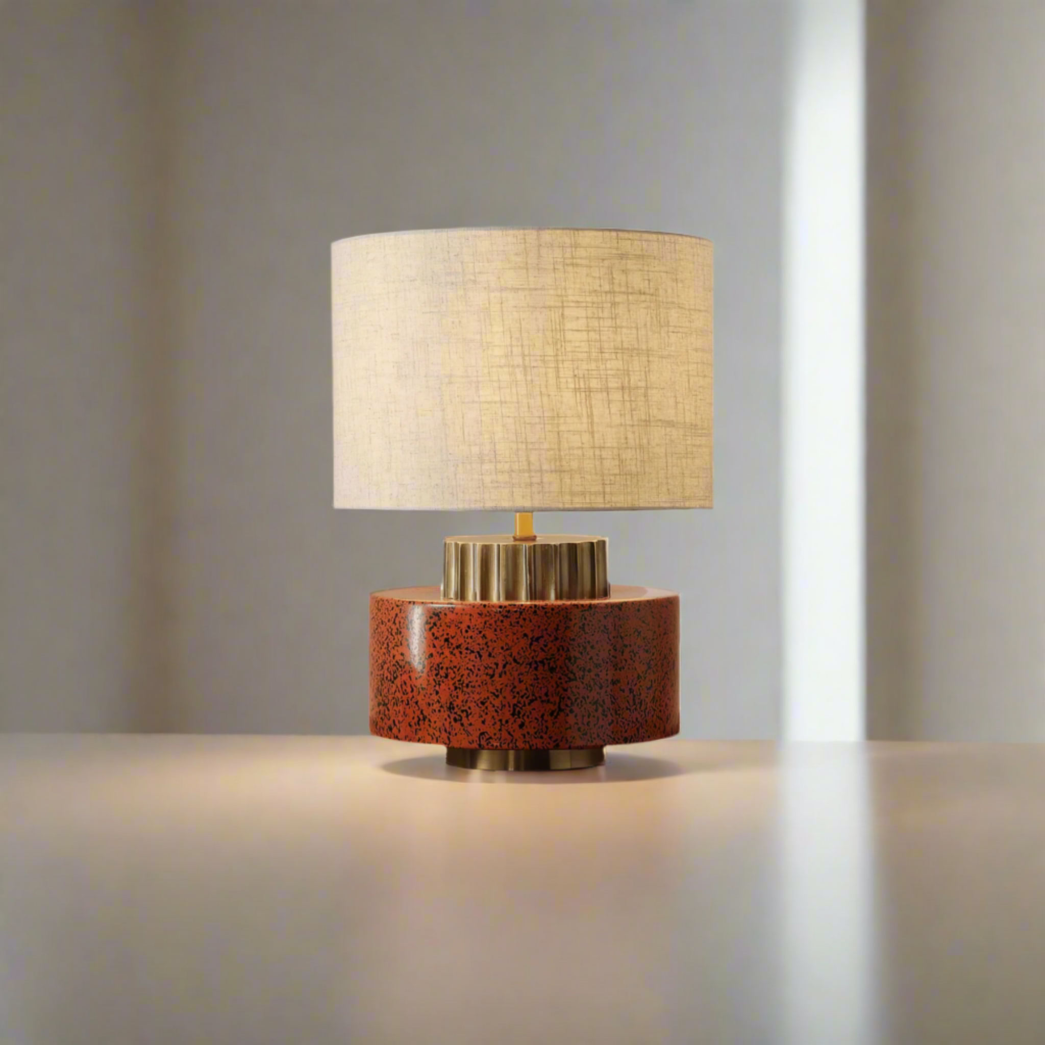 Refined Visual Appeal: A warm red ceramic body paired with a soft textile shade creates an elegant balance of color and texture.