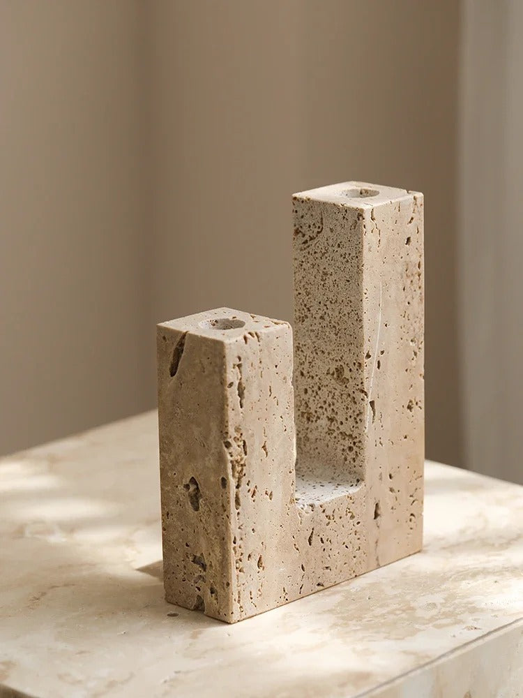 Bring minimalist elegance to your space with this natural travertine Eamon Candle Holder inspired by Wabi Sabi design. Its raw texture and organic shape make it a standout piece for modern interiors, wedding table settings, or styled photography. The neutral beige tone pairs effortlessly with any decor style, while its solid stone form adds visual weight and authenticity. Whether used for ambiance or as a statement accent, it brings timeless charm to any room.