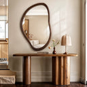 The Bandei Mirror combines timeless craftsmanship with modern design, making it a versatile addition to any interior. Its natural walnut wood frame and irregular shape bring warmth and sophistication to bathrooms, bedrooms, or dressing areas. Designed for both beauty and function, this mirror enhances any space with a soft, elegant glow and a clean contemporary aesthetic.