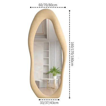 This wavy Saga Full-Length Mirror brings a modern Nordic touch to your home, blending functionality with playful design. With its irregular wave frame and clear reflection, it serves as both a practical dressing mirror and a stylish décor statement.