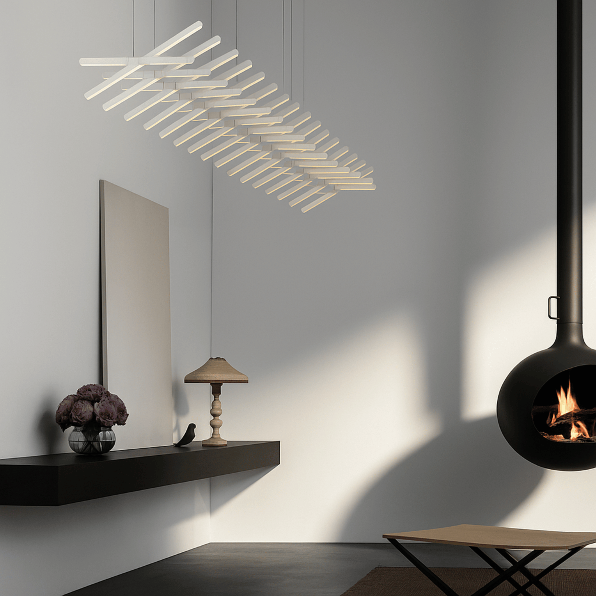 The Nordime Pendant Light is a refined fusion of contemporary design and intelligent lighting. Defined by clean geometry and a polished chrome finish, this statement chandelier brings sculptural elegance and adaptable illumination to dining rooms, bedrooms, hotel halls, and luxury living spaces.