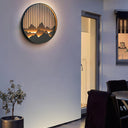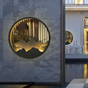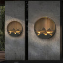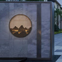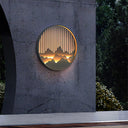 The Kosciuszko Wall Light is a stylish addition to your outdoor decor, featuring a circular design with a mountain and water motif, complemented by a durable gray-painted frame. This modern lamp is built to endure outdoor conditions and will enhance your home's charm with its timeless appeal.