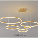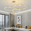 Elevate your home décor with this modern LED ring chandelier, designed for both style and functionality. The sleek aluminum and acrylic construction provides a contemporary touch, while the adjustable hanging length allows for customizable installation. Available in multiple ring configurations, this ceiling light is perfect for living rooms, bedrooms, dining areas, and offices. Choose from warm white, cool white, or dimmable options to create the perfect ambiance.
