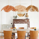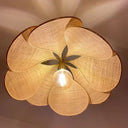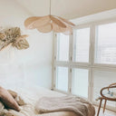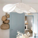 This beautifully crafted pendant lamp features a delicate fabric shade, expertly handmade by skilled artisans. Its intricate floral design adds a touch of timeless sophistication, creating a soft, warm glow perfect for any room or occasion.