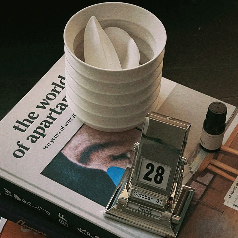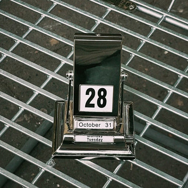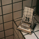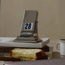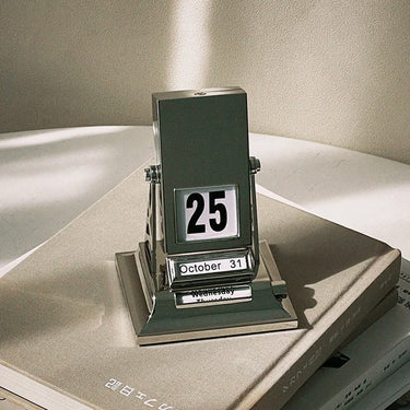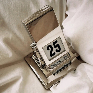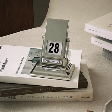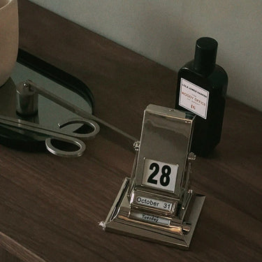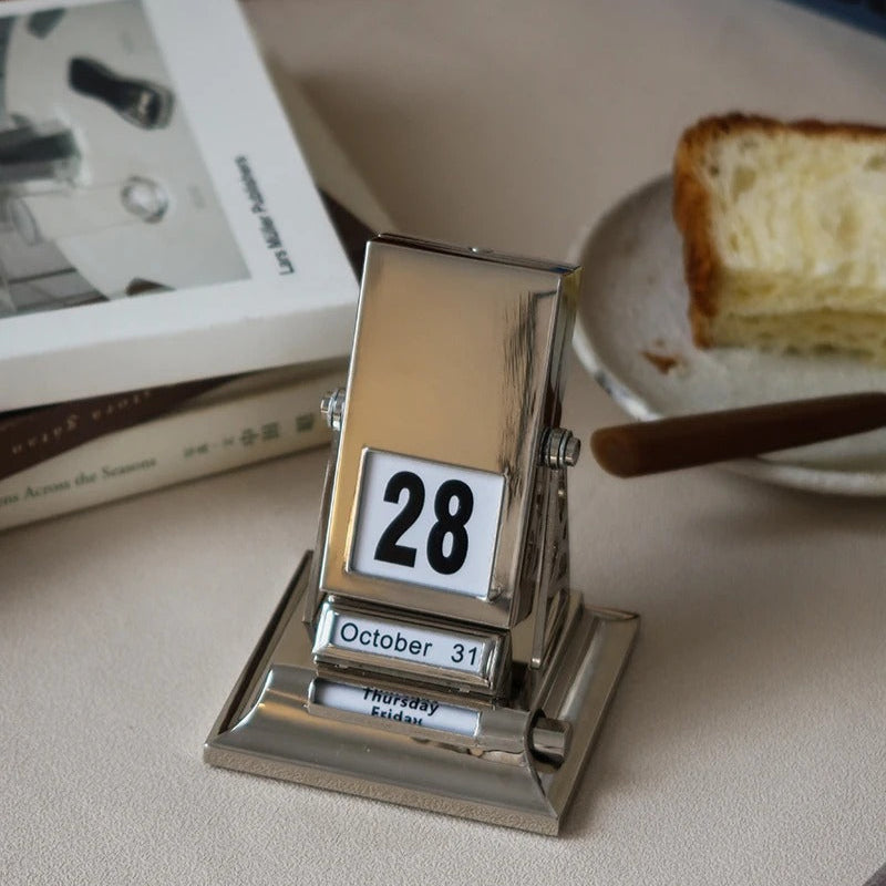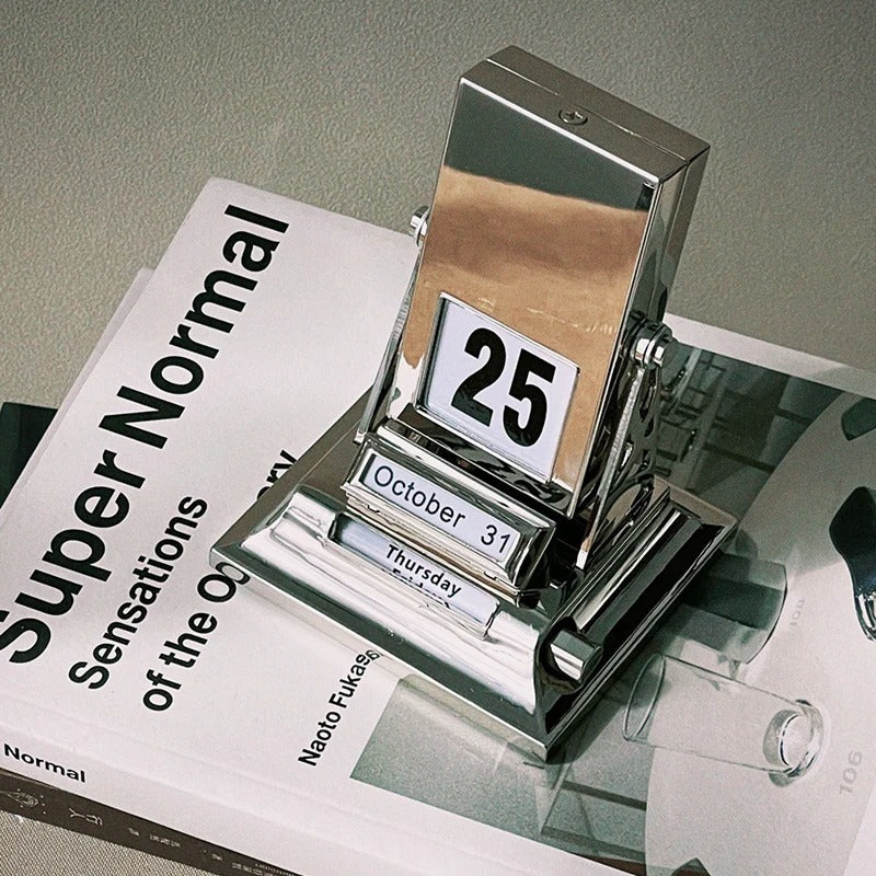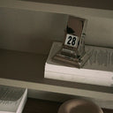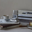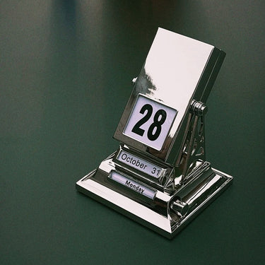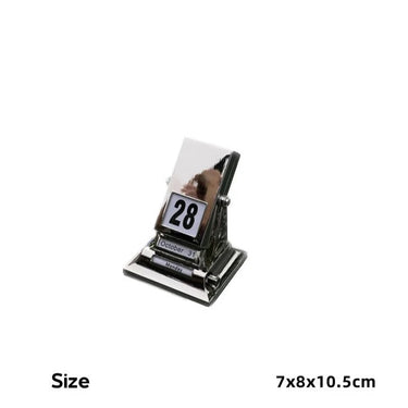 Introduce elegant organization to your workspace with this Tate Rotating Desk Calendar. This perpetual flip calendar features a sleek, minimalist design in silver metal that complements modern décor. Effortless to update and stylishly practical, it’s both a functional tool and an eye-catching tabletop ornament. Crafted for long-lasting use, this desktop accessory perfectly balances utility and aesthetics.