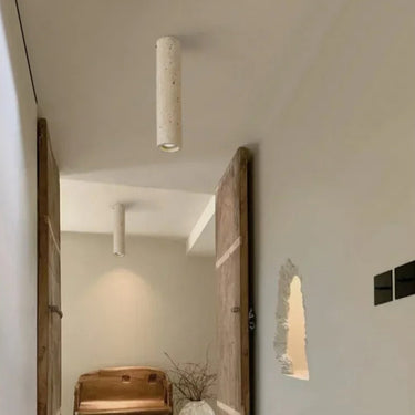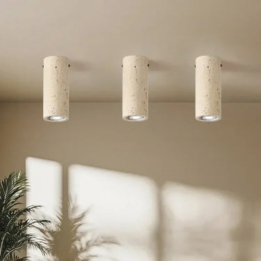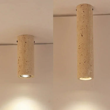 Enhance your interior with this Cyryl Ceiling Light crafted from natural yellow travertine stone. The compact, surface-mounted design provides stylish yet functional illumination, ideal for entryways, bedrooms, or boutique spaces. Offering both warm and cold LED lighting options, it effortlessly blends form and function. This stone ceiling lamp adds organic texture and modern elegance to any setting.