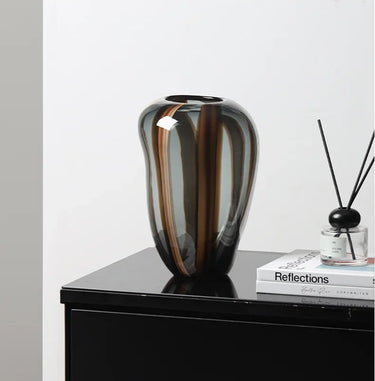 Add a vibrant touch to your home with this colored striped Cosmos Glass Vase in a sleek modern style. Perfect for fresh flowers, hydroponic plants, or dried arrangements, it doubles as a stylish decorative accent on desks, tables, or shelves. Its eye-catching striped design brings character and charm to any room while blending seamlessly with contemporary decor.
