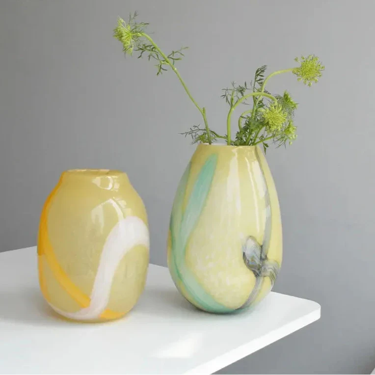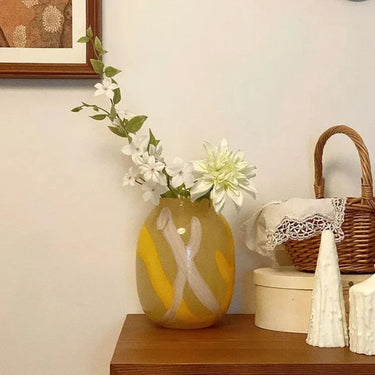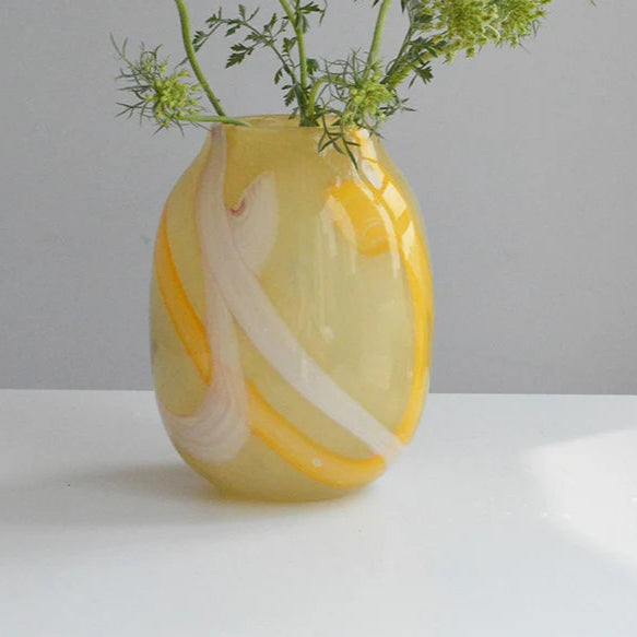 Brighten up your home with this colorful Hamish Striped Glass Vase, crafted in a sleek modern style. Perfect for displaying artificial flowers, dried arrangements, or as a decorative accent on its own, it adds charm to any room. Its vibrant striped design makes it a standout piece for desks, dining tables, or living room shelves.
