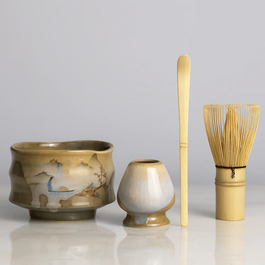 - Set Includes: Ceramic Spout Bowl ×1, Bamboo Whisk ×1, Whisk Holder ×1, Bamboo Spoon ×1