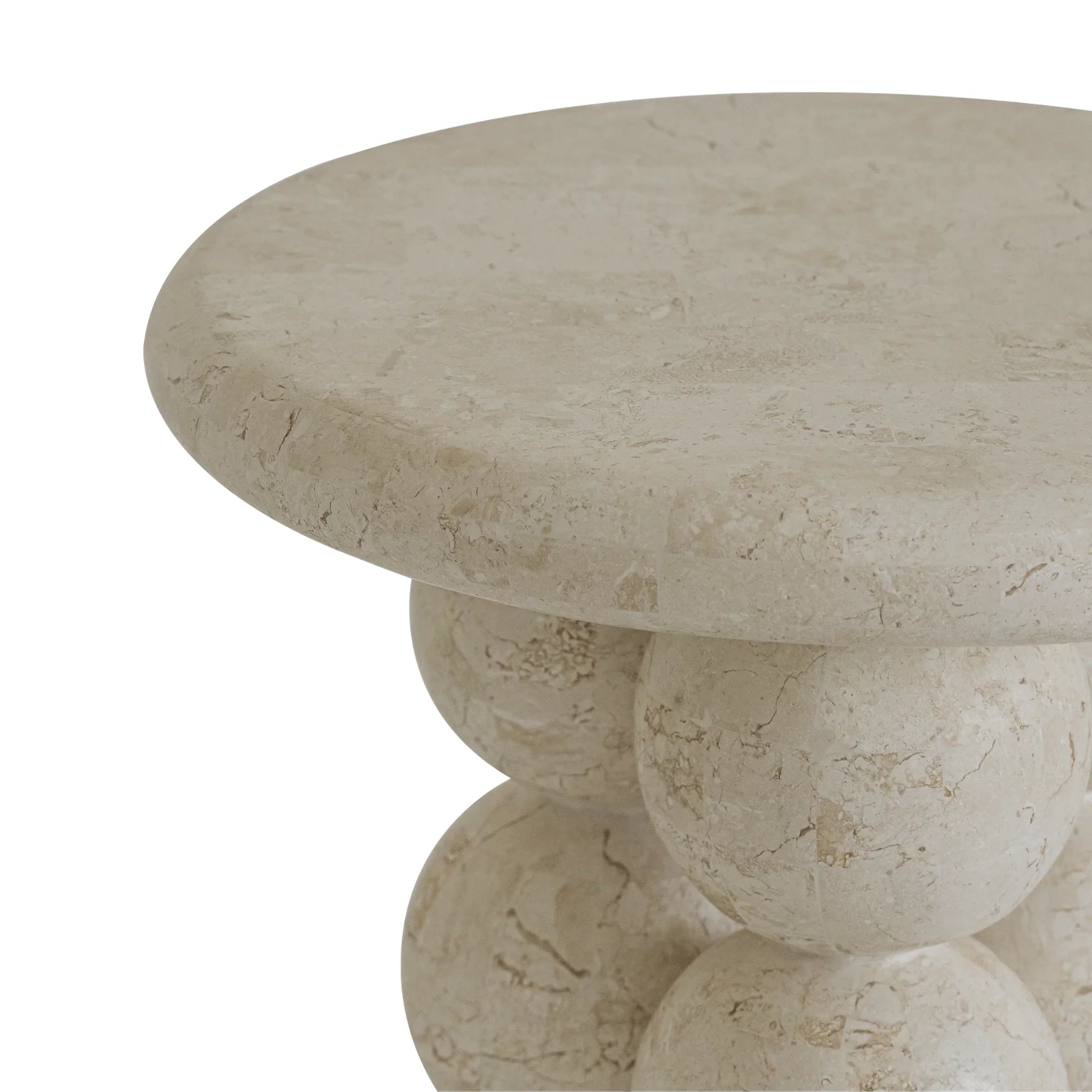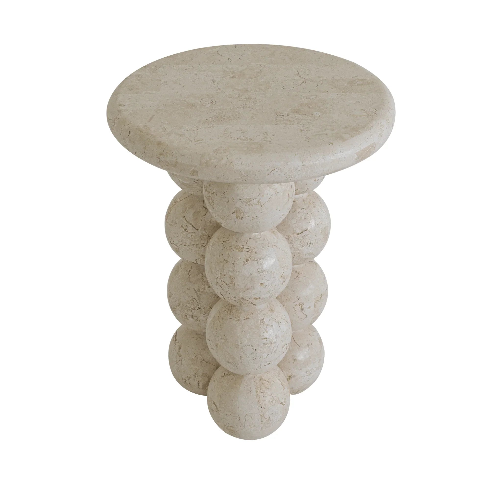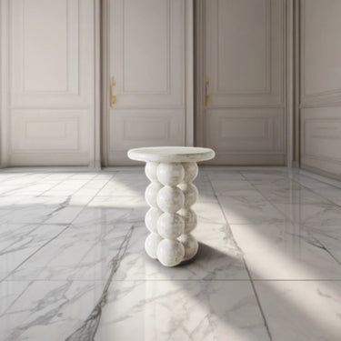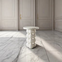 Skilled artisans hand-carve and polish each table, achieving a smooth, radiant finish. The layered spherical base adds both architectural grace and solid stability. Produced in limited quantities.