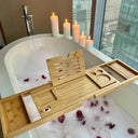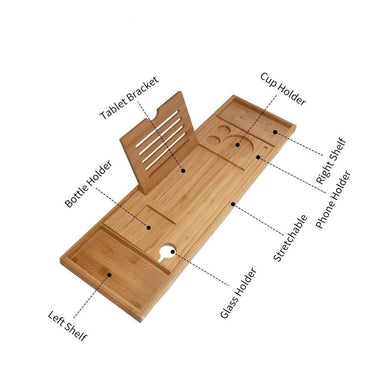 Elevate your bath experience with the sleek Adjustable Bamboo Bathtub Tray. Crafted from eco-friendly bamboo, it fits most tubs (74 to 94 cm) and offers slots for a book, tablet, or wine glass. Non-slip grips keep everything secure while you unwind.