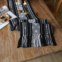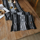 Add a touch of elegance and charm to your home with this Boho Table Runner. Featuring a beautiful woven jacquard design and stylish tassels, it brings a boho, Nordic feel to your dining table, coffee table, or bedroom dresser. The striped pattern and embroidered details elevate your home décor, making it perfect for weddings, dinners, and special occasions.