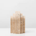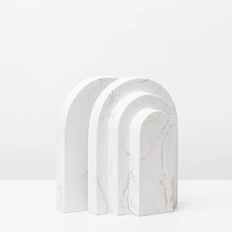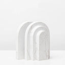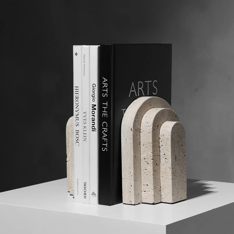 Bring timeless elegance to your shelf with this set of Emil Bookends. Crafted from authentic beige travertine stone, these U-shaped bookends combine vintage charm with modern minimalism, making them a versatile accent for living rooms, offices, or study spaces. Each pair is unique due to natural variations in the stone, offering a sophisticated touch to any home decor setup. Perfect for organizing books while adding a sculptural aesthetic to your space.