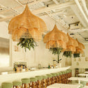 This handmade Emilia Pendant Light brings a natural touch to your home decor. The elegant umbrella design and neutral beige or black color complement a variety of spaces, from dining rooms to bedrooms and teahouses. Its unique handcrafted details enhance the aesthetic of any room while providing warm, inviting lighting. The light source is compatible with LED bulbs, offering efficient illumination for areas up to 30 square meters. This rattan pendant light is perfect for anyone seeking a stylish, eco-friendly lighting solution.
