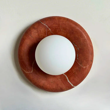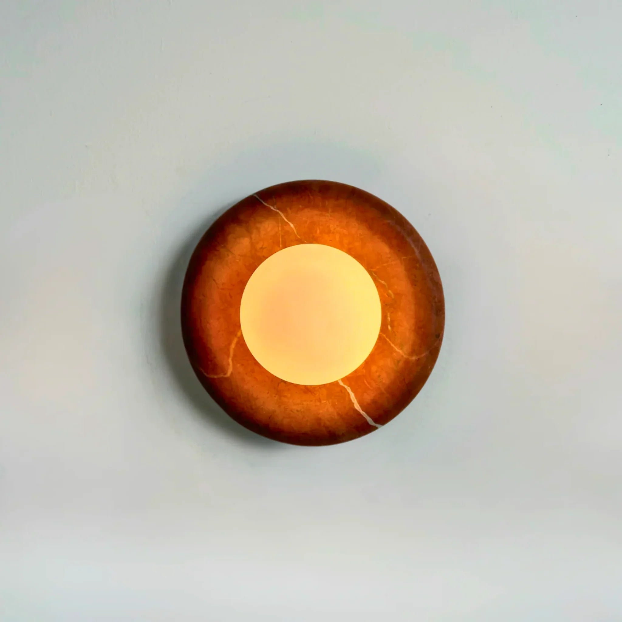 The Irha Wall Lamp reflects understated luxury through natural materials and refined design. Crafted from genuine marble and frosted glass, each piece reveals distinctive veining that ensures no two lights are the same. Its rounded form and soft glow create a harmonious blend of warmth and texture, making it ideal for bedrooms, hallways, and spa-inspired bathrooms.