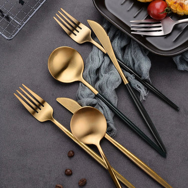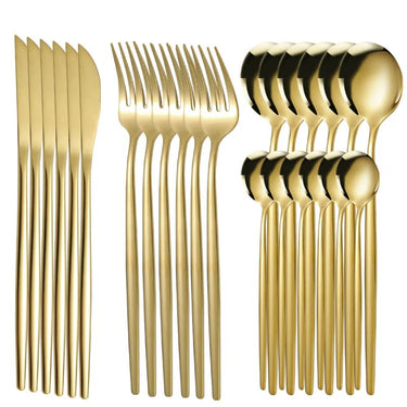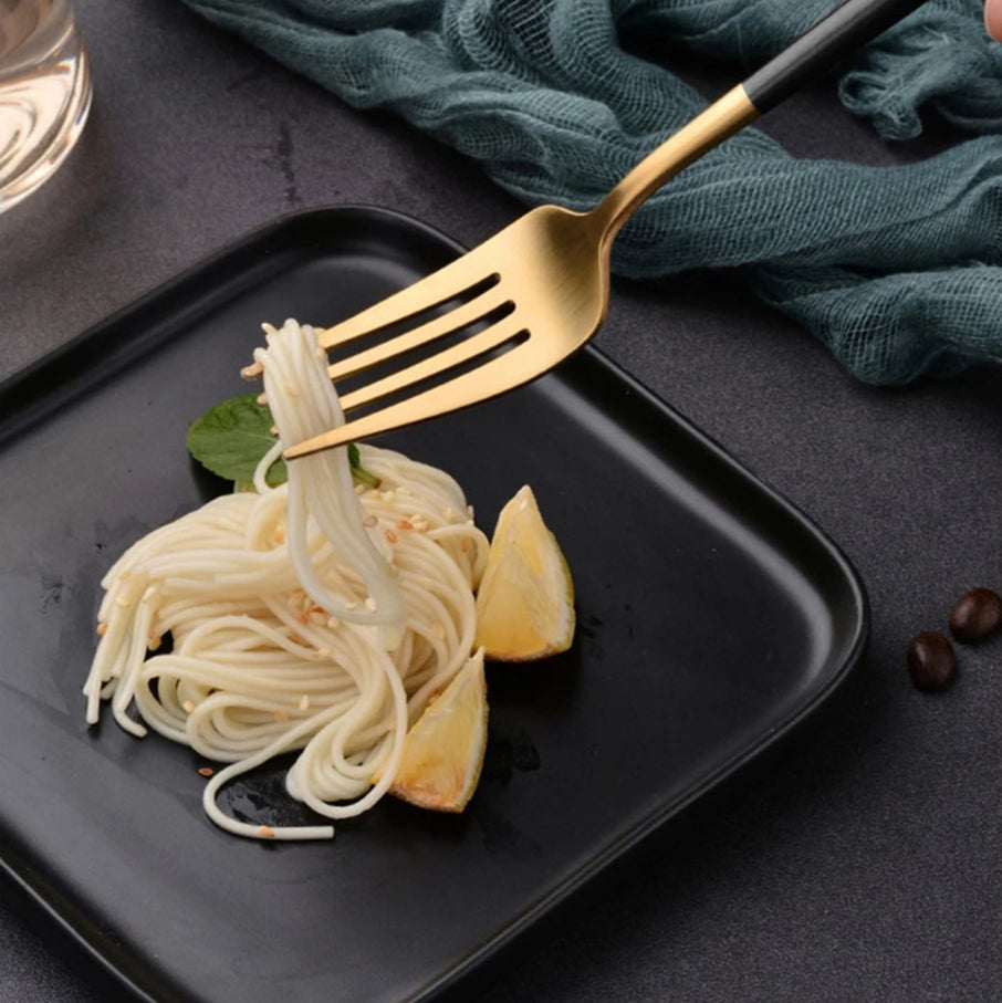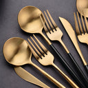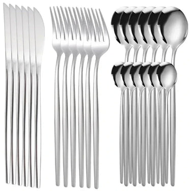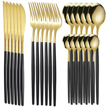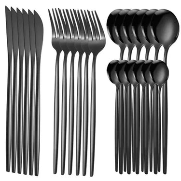 Elevate your dining experience with this 24-piece Ives Stainless Steel Cutlery Set, available in elegant finishes like black, gold, silver, and black gold. Designed with a sleek modern style, it perfectly complements both everyday meals and special occasions. Durable and easy to clean, this set is ideal for long-lasting use. With a solid pattern and timeless look, it adds sophistication to any table setting.