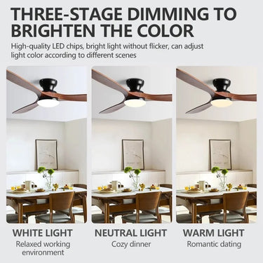 This Macushla LED Ceiling Fan combines modern lighting with powerful air circulation, making it ideal for bedrooms, dining rooms, restaurants, or low-ceiling spaces. Crafted with solid wood blades and a painted iron body, it delivers quiet operation, strong wind, and elegant design in one fixture. With dimmable LED lighting and a handy remote control, you can easily switch between light tones and fan speeds. The reversible motor function makes it suitable for both summer and winter use. Designed for spaces between 8–25 m², this fan offers year-round comfort and minimalist sophistication.