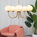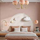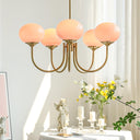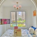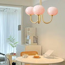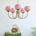 This elegant ceiling light features a golden finish and soft pink glass shades, bringing a touch of timeless glamour to any room. Its modern color palette and unique design make it a standout piece.