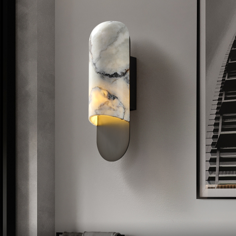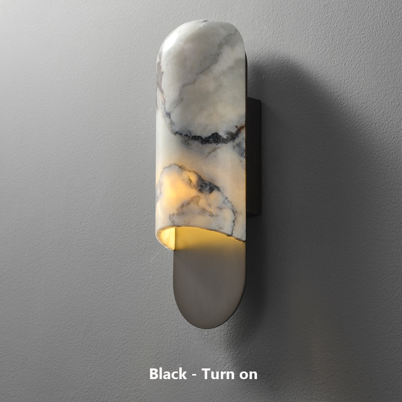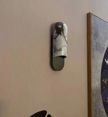 The marble LED Morwenna Wall Lamp adds a touch of luxury to bedrooms, living rooms, and hallways with its elegant stone design and refined finish. Its warm or cool LED lighting creates a stylish atmosphere while offering reliable daily illumination. Made with durable marble and iron, this wall-mounted lamp blends timeless craftsmanship with modern functionality. Perfect for enhancing interiors with a high-end decorative touch.