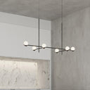 This elegant Rosemary Ceiling Chandelier features six glass ball shades in a black and gold metal finish, combining luxury with modern simplicity. Its plated iron body delivers a sophisticated look, perfect for bedrooms, dining rooms, and stylish lounges. With warm and white light options and long-lasting LED bulbs included, this luminaire ensures ambient lighting that enhances any space. A statement piece for any contemporary home.