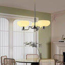This Ruhi Chandelier features a minimalist Bauhaus design with frosted milky white glass shades that diffuse light beautifully. Perfect for bedrooms, living rooms, or study areas, it adds an artistic and elegant touch to any space. The semi-flush mount installation makes it ideal for both low and standard ceilings. Designed with a polished chrome finish, this chandelier blends vintage charm with modern aesthetics.