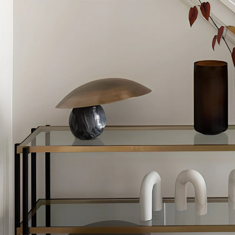 The Recmar Table Lamp combines modern simplicity with timeless Mediterranean charm. Featuring a solid marble base and a golden metal shade, this lamp creates a soft, warm glow that enhances any bedroom, living room, or reading space. Its sculptural form and high-quality materials make it both a practical lighting solution and an elegant decorative accent for contemporary homes.