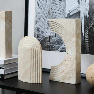 Elevate your space with this Wyatt Travertine Arch, designed in a modern geometric form that blends natural texture with architectural elegance. Made from genuine marble, each piece has unique patterns and tones, making it a standout accent on coffee tables, bookshelves, or entryway consoles. Ideal for Scandinavian, minimalist, and contemporary interiors, this ornament adds a subtle sense of luxury.